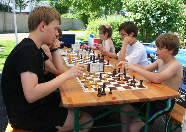 Bei bestem Wetter spielten zehn Kinder am Jugendschachturnier der Kategorie U14 im Freibad Oberwinterthur mit.